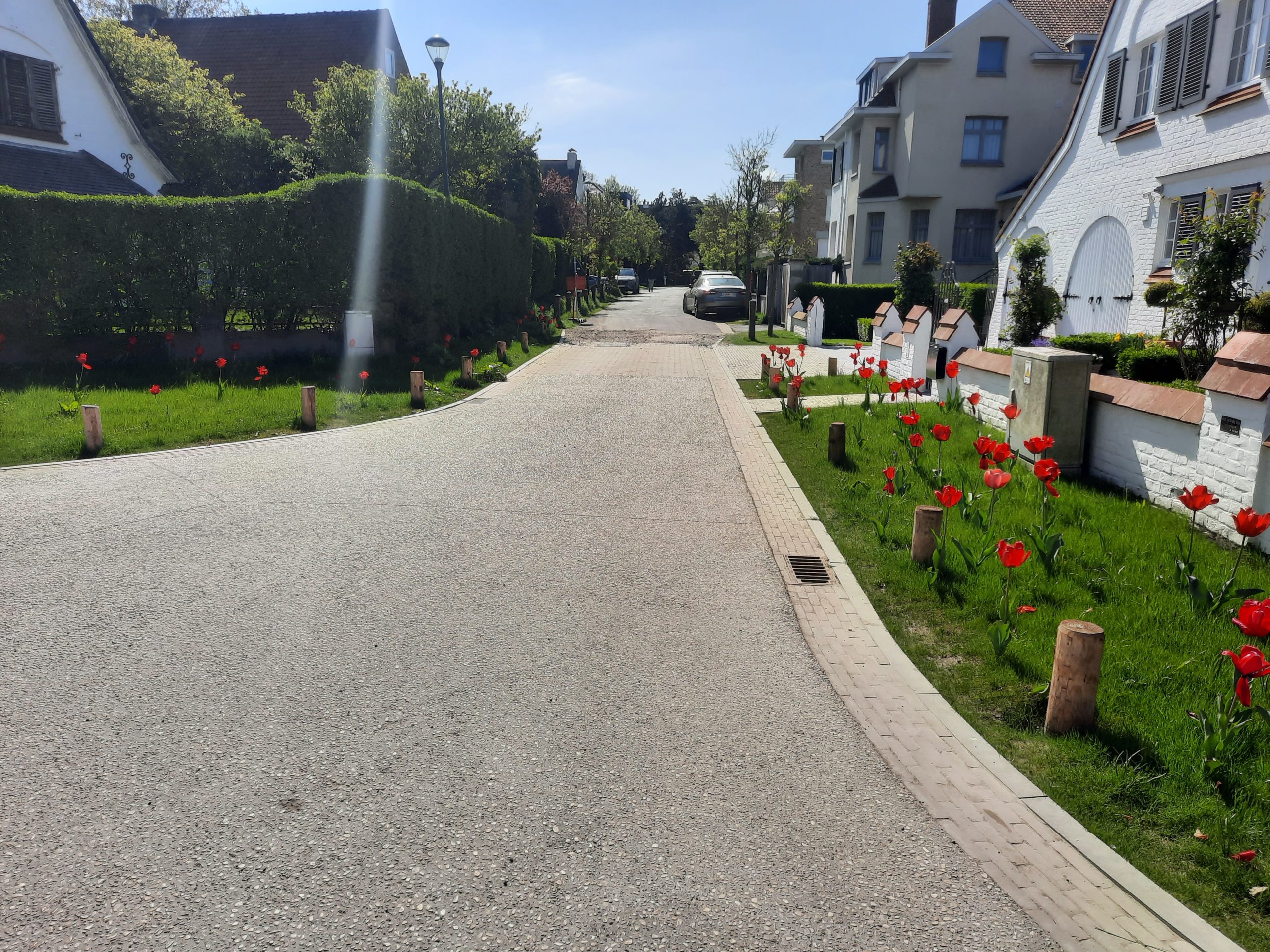 Voor deze opdracht verzorgden we zowel de wegeniswerken als de groenaanleg. Dit omvatte onder andere grondverzet, de aanleg van rijwegen en opritten, het plaatsen van straatmeubilair en het herstellen van bestaande infrastructuur. Daarnaast zorgden we voor teelaarde, bezaaiing en aanplantingen voor een afgewerkte en groene omgeving.